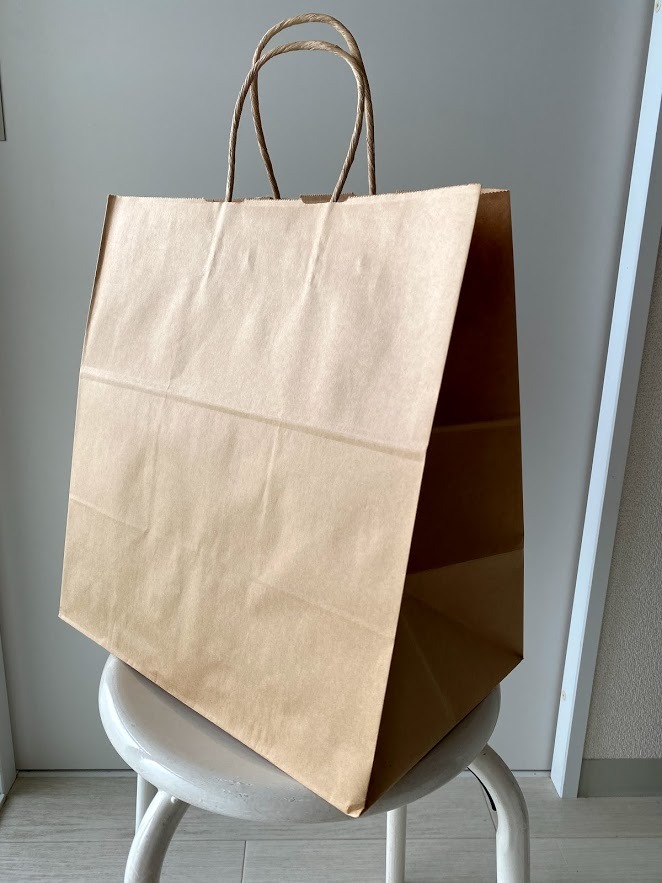 紙袋のサイズは3種類。MとLはクラフト。LLはホワイトです。